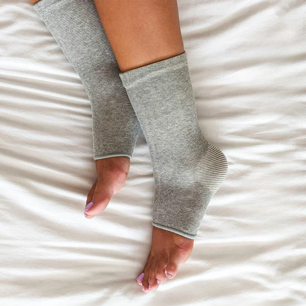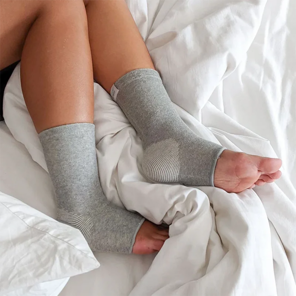 Våra premium kompressionsstrumpor är skapade just för dig – du som inte accepterar att smärtan ska styra vardagen. Den naturliga bambukompressionen verkar mjukt över fotvalv, häl och fotled medan du vilar eller sover. De är öppna vid tårna, svala, elastiska och sköna, men ändå tillräckligt kraftfulla för att minska svullnad, stelhet och smärta. Du får lättnad, cirkulation och återhämtning där du verkligen behöver det.